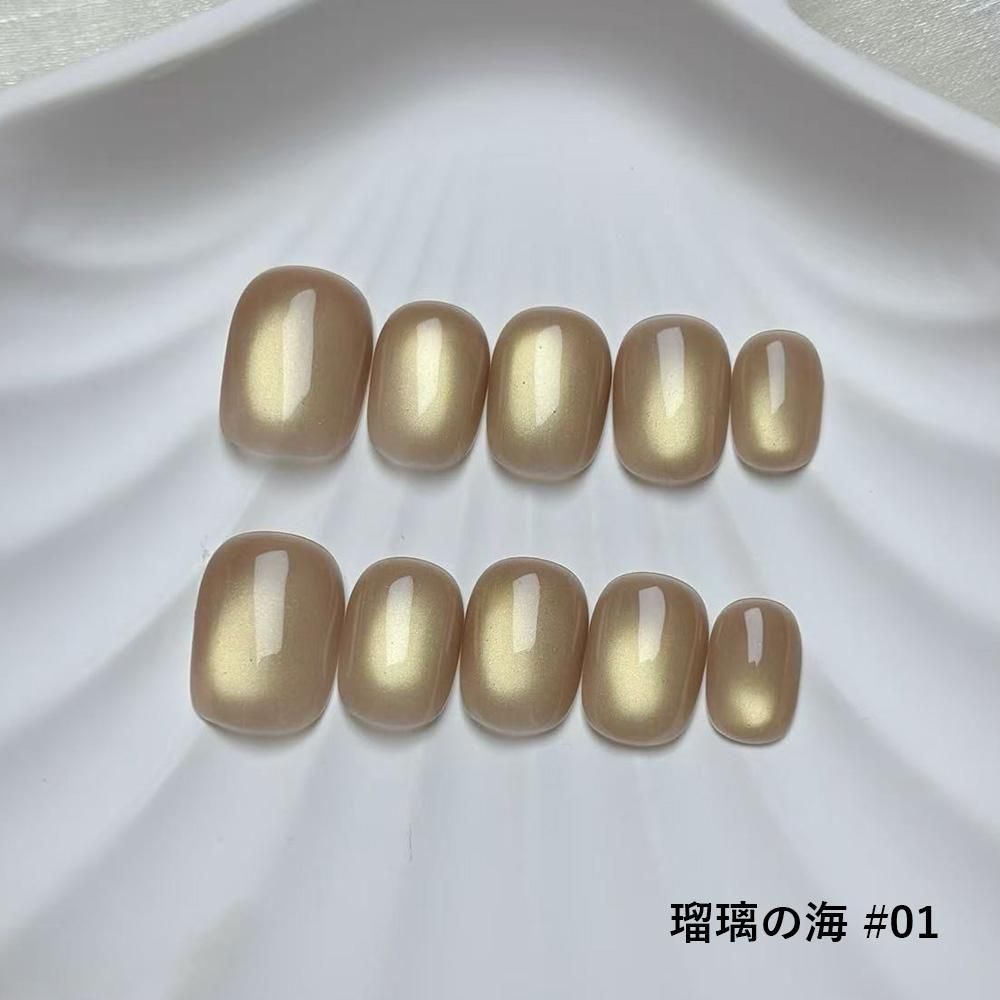 まるで宝石を指先に纏うような、気品あふれるマグネットネイルチップ。角度によって変化する光が奥深く輝き、しっとりとした潤いをまとったような艶めきが上品な存在感を放ちます。瑠璃の名にふさわしい透明感と光沢を持つ全10色のコレクションは、繊細な輝きの中にそれぞれ異なる個性を宿し、手元を優雅に彩ります。