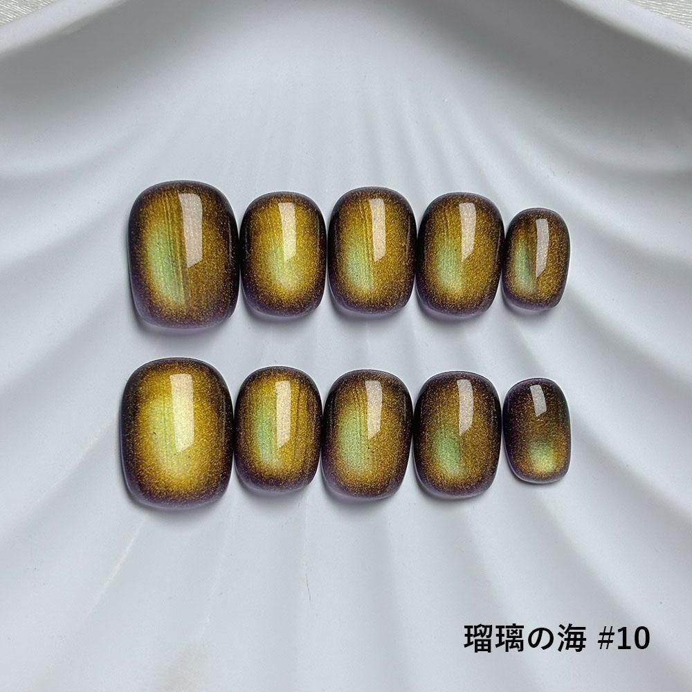 まるで宝石を指先に纏うような、気品あふれるマグネットネイルチップ。角度によって変化する光が奥深く輝き、しっとりとした潤いをまとったような艶めきが上品な存在感を放ちます。瑠璃の名にふさわしい透明感と光沢を持つ全10色のコレクションは、繊細な輝きの中にそれぞれ異なる個性を宿し、手元を優雅に彩ります。